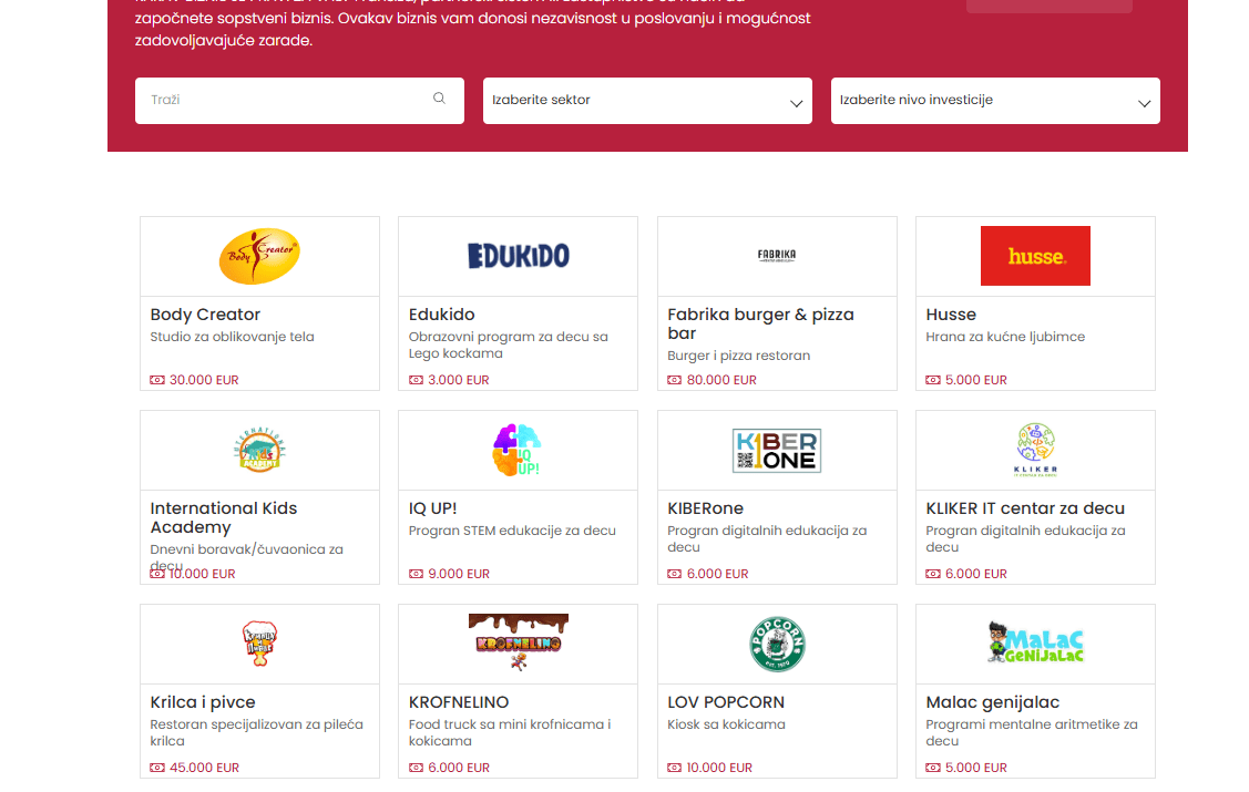 Oglašavanje franšiza na Franchising.rs pomaže vam da pronađete investitore i franšizoprimce koji aktivno traže poslovne prilike.